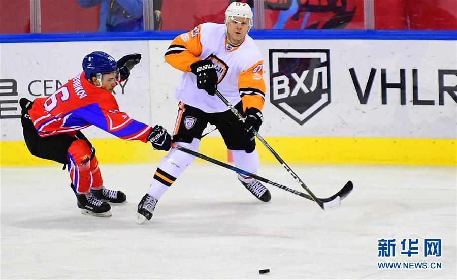 12月26日,俄罗斯叶尔马科队球员安德烈(右)在比赛中传球。 新华社记者林宏摄