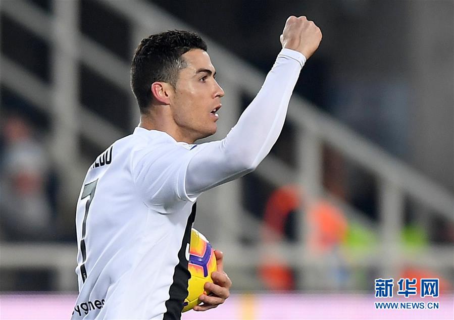 12月26日,尤文图斯队球员克里斯蒂亚诺·罗纳尔多庆祝进球。 当日,在2018-2019赛季意大利足球甲级联赛第18轮的比赛中,尤文图斯队客场以2比2战平亚特兰大队。 新华社/路透