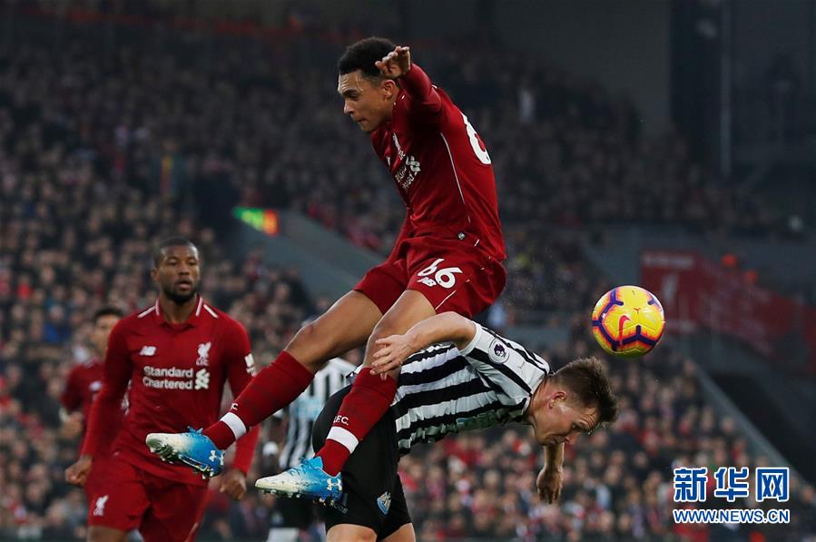12月26日,利物浦队球员阿诺德(上)与纽卡斯尔联队球员里奇拼抢。 新华社/路透