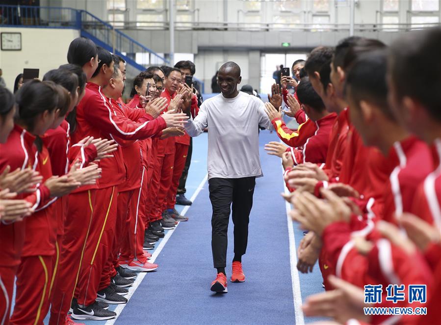 埃鲁德·基普乔格(肯尼亚,34岁,男子马拉松运动员) 基普乔格在柏林马拉松赛上以2小时01分39秒的成绩卫冕,并将马拉松世界纪录提升了1分18秒,这是1967年以来男子马拉松世界纪录提升幅度最大的一次,也是人类首次将全程马拉松用时缩短至2小时02分以内。基普乔格还以2小时03分05秒的成绩卫冕伦敦马拉松冠军。基普乔格被国际田联评为年度最佳男运动员。 图为2018年11月15日,中国国家田径队教练、队员欢迎基普乔格(中)。当日,基普乔格来到国家体育总局田径馆,与中国国家田径队一同训练,并与队员进行经验交流分享。 新华社发(贾浩成摄)