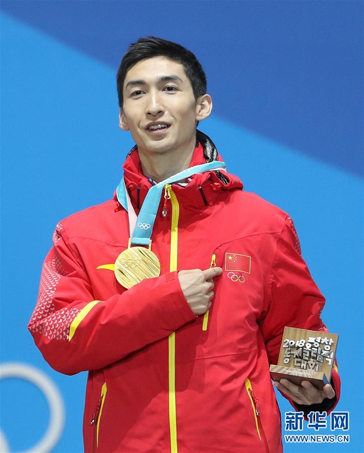 武大靖(中国,24岁,男子短道速滑运动员) 武大靖在平昌冬奥会上夺得短道速滑男子500米冠军并两次刷新世界纪录,为中国代表团赢得本届冬奥会唯一一枚金牌,实现了中国冰上男子单人项目冬奥会金牌零的突破。11月,在短道速滑世界杯美国盐湖城站500米比赛中,武大靖以39秒505的成绩夺冠,并再度改写世界纪录。 图为2018年2月23日,武大靖在2018年平昌冬奥会短道速滑男子500米奖牌颁发仪式上庆祝获得金牌。 新华社记者白雪飞摄