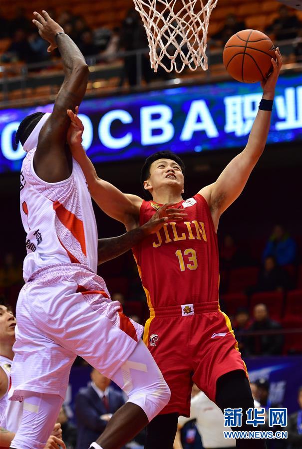12月27日,吉林九台农商银行队球员姜宇星(右)在比赛中突破上篮。 当日,在2018-2019赛季中国男子篮球职业联赛(CBA)常规赛第25轮比赛中,山东西王队主场以112比102战胜吉林九台农商银行队。 新华社记者朱峥摄