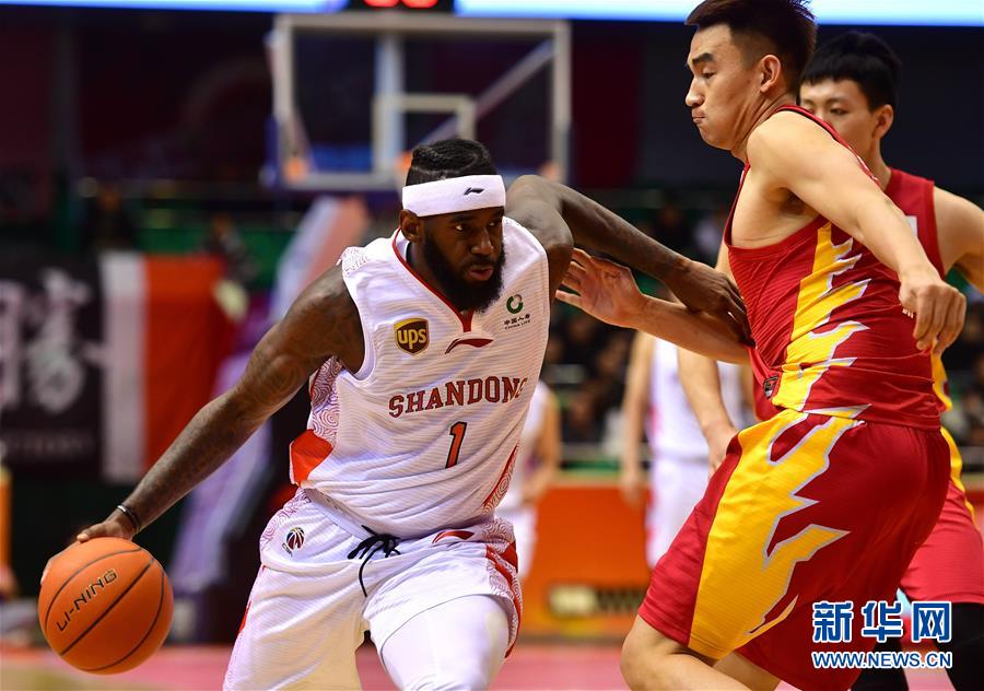 12月27日,山东西王队球员桑普森(左)在比赛中带球突破。 新华社记者朱峥摄
