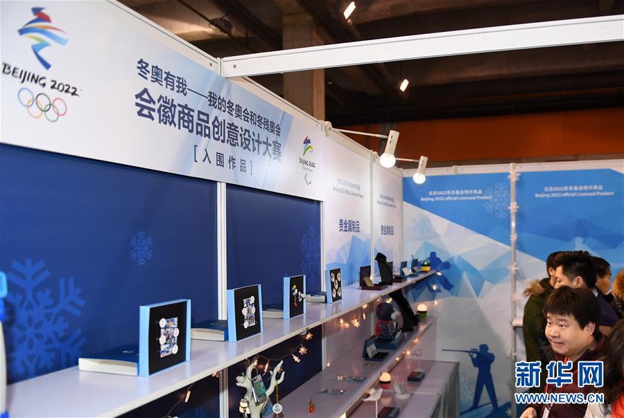 图为订货会上展示的在北京冬奥会和冬残奥会会徽商品创意设计大赛中入围的作品(摄于12月28日)。 新华社记者张晨霖摄