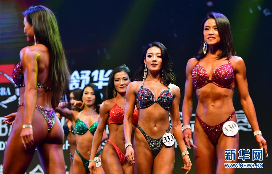 12月28日,参赛选手在女子比基尼健身全场冠军总决赛中。 当日,2018年CBBA全国健美健身冠军总决赛在福建晋江举行。 新华社记者魏培全摄