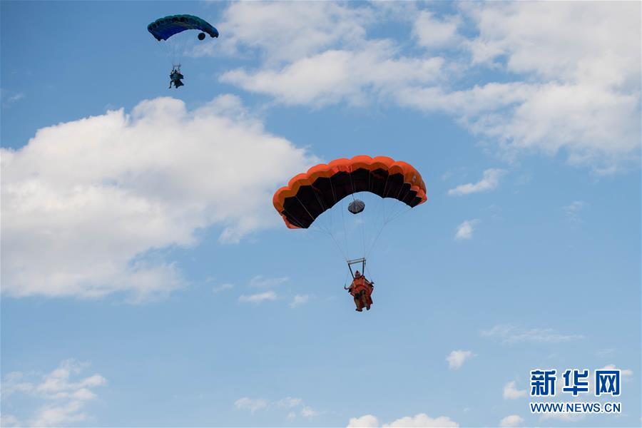 12月28日,来自智利的翼装飞行选手在团体定点着陆赛中开伞降落。 当日,2018“爱心飞翼”翼装飞行世界杯总决赛在云南省普洱市景谷傣族彝族自治县开赛。本次比赛包含团体定点着陆赛、逆向冲高个人挑战赛和翼装夜间编队飞行挑战赛,来自世界各地的20余名运动员参加了此次比赛。 新华社记者胡超摄