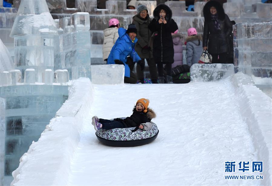 小朋友在“鸟巢”欢乐冰雪季上游玩。 新华社记者张晨霖摄