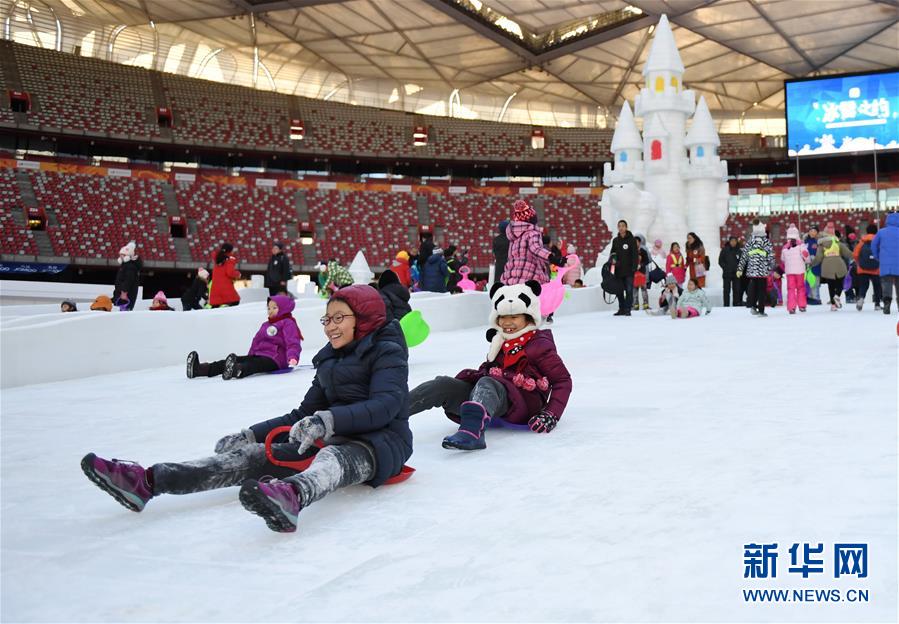 小朋友在“鸟巢”欢乐冰雪季上游玩。新华社记者张晨霖摄
