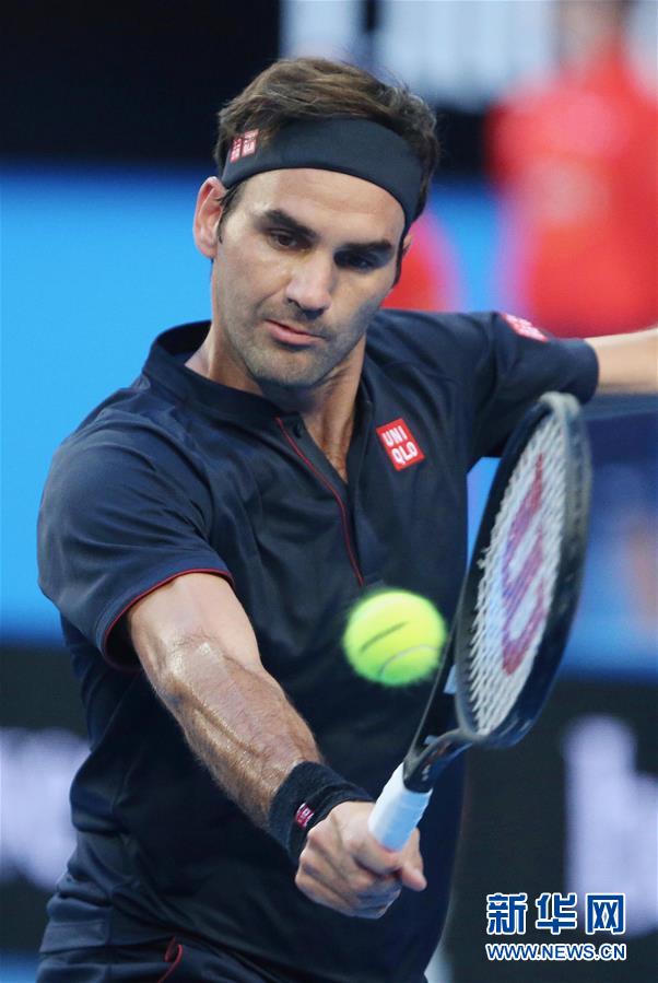 12月30日,费德勒在比赛中回球。 当日,在澳大利亚珀斯进行的2019年霍普曼杯网球赛小组赛中,瑞士队选手费德勒以2比0战胜英国队选手诺里。 新华社发(周丹摄)