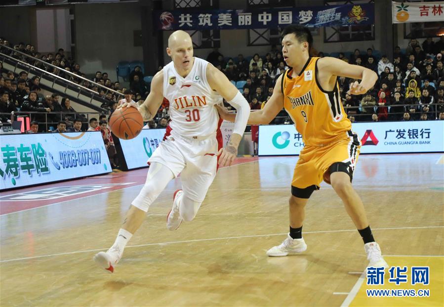 12月30日,吉林九台农商银行队球员兰佩(左)在比赛中带球突破。 当日,在2018-2019赛季中国男子篮球职业联赛(CBA)常规赛第26轮比赛中,吉林九台农商银行队主场以119比114战胜山西汾酒股份队。 新华社发