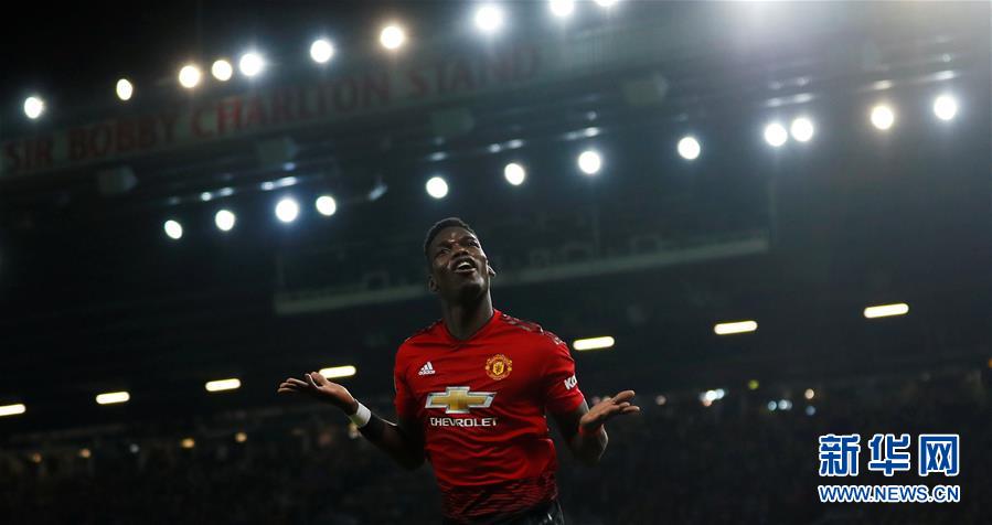 12月30日,曼联队球员博格巴进球后庆祝。 当日,在2018-2019赛季英格兰足球超级联赛第20轮比赛中,曼彻斯特联队主场以4比1战胜伯恩茅斯队。 新华社/路透