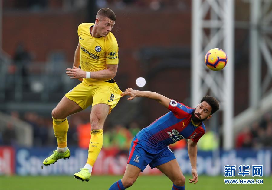 12月30日,切尔西队球员巴克利(左)与水晶宫队球员汤森特拼抢。 当日,在2018-2019赛季英格兰足球超级联赛第20轮比赛中,切尔西队客场以1比0战胜水晶宫队。 新华社/路透