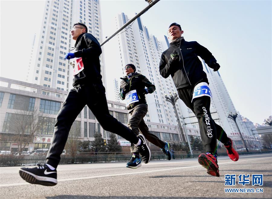 ↑1月1日,参赛选手在比赛中奔跑。高原古城青海省西宁市迎来了第46届元旦环城赛,近1万人报名参赛,其中年龄最大的75岁,最小的10岁。 2019年新年伊始,全国各地的健身爱好者不畏冬日严寒,以丰富多样的室外运动辞旧迎新。 新华社发(张龙摄)