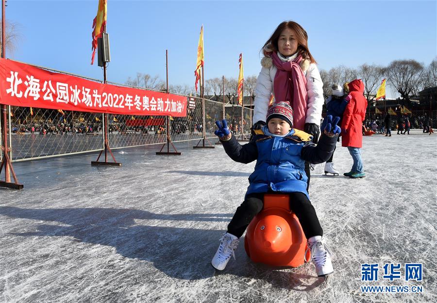 ↑1月1日,游客在北海公园冰场滑冰。元旦小长假期间,北海公园冰场迎来众多游客体验冰上运动乐趣。冰场分为冰上自行车区、冰车混合区、冰鞋区、碰碰车区等区域,游客在不同区域健身畅玩。 2019年新年伊始,全国各地的健身爱好者不畏冬日严寒,以丰富多样的室外运动辞旧迎新。 新华社发(任超摄)