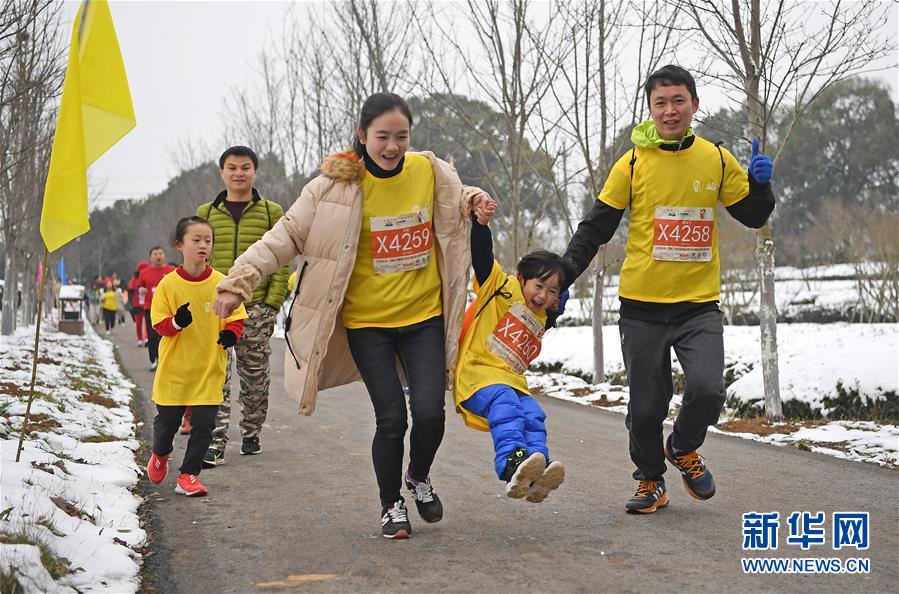 ↑1月1日,参赛选手在比赛中。南昌新年国际半程马拉松在江西省南昌县凤凰沟景区开跑,比赛设有半程马拉松、迷你马拉松(5公里)和亲子马拉松(5公里)三项,吸引了5000多名马拉松爱好者参赛。 2019年新年伊始,全国各地的健身爱好者不畏冬日严寒,以丰富多样的室外运动辞旧迎新。 新华社记者万象摄