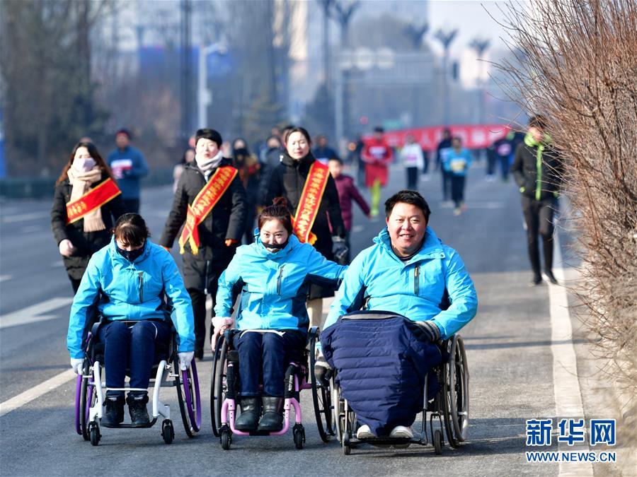 ↑1月1日,轮椅选手在比赛中。高原古城青海省西宁市迎来了第46届元旦环城赛,近1万人报名参赛,其中年龄最大的75岁,最小的10岁。 2019年新年伊始,全国各地的健身爱好者不畏冬日严寒,以丰富多样的室外运动辞旧迎新。 新华社发(张龙摄)