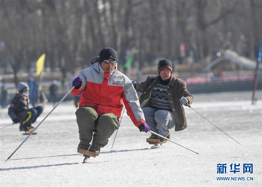 ↑1月1日,市民在辽宁省鞍山市二一九公园的冰场上滑冰车。 2019年新年伊始,全国各地的健身爱好者不畏冬日严寒,以丰富多样的室外运动辞旧迎新。 新华社记者龙雷摄