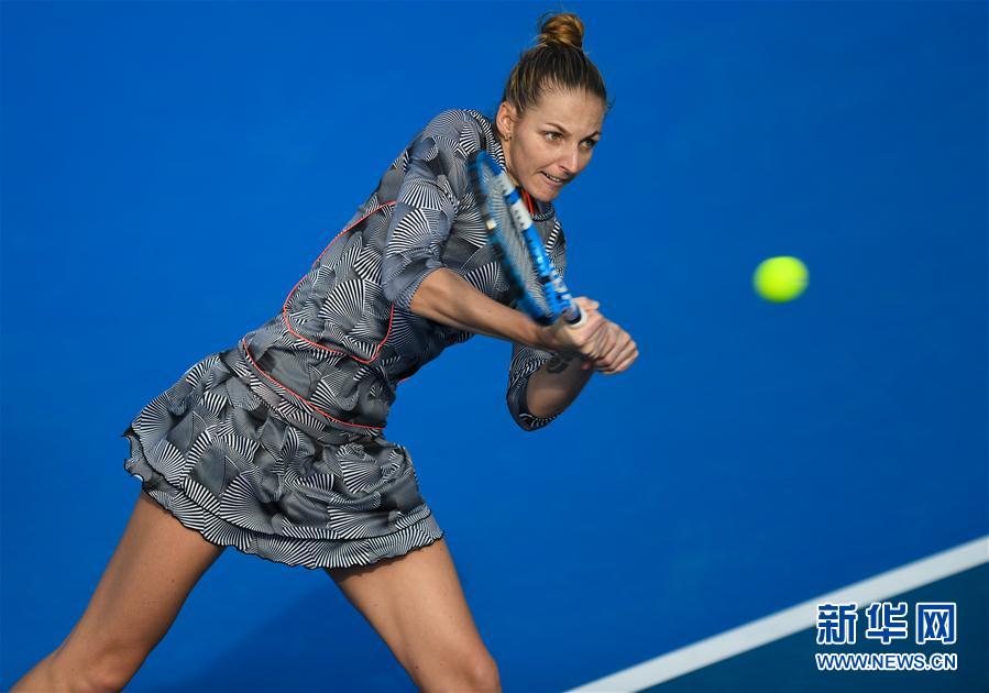↑1月1日,普利斯科娃在比赛中回球。 当日,在深圳举行的WTA深圳公开赛单打第一轮比赛中,中国选手彭帅在与捷克选手普利斯科娃的比赛过程中因伤退赛。 新华社记者毛思倩摄