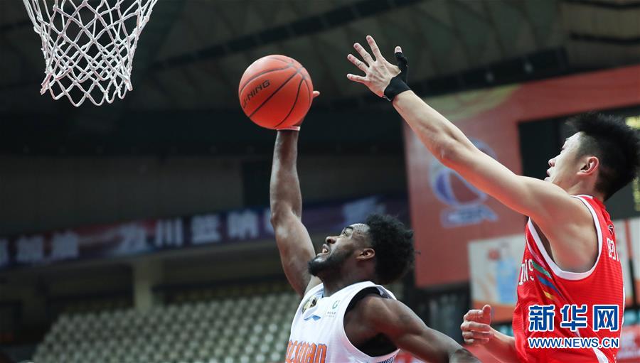 四川五粮金樽队球员富兰克林(左)在比赛中进攻。 新华社发