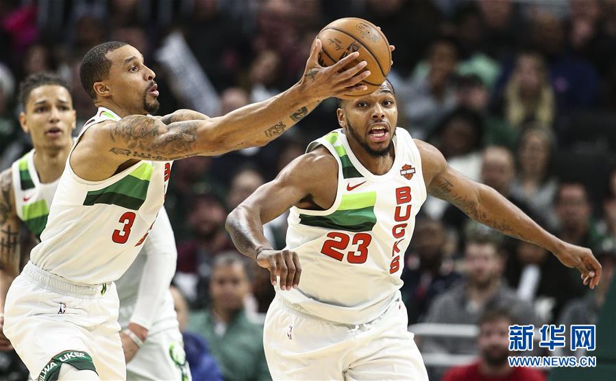 雄鹿队球员希尔(前左)在比赛中争抢篮板球。 新华社发