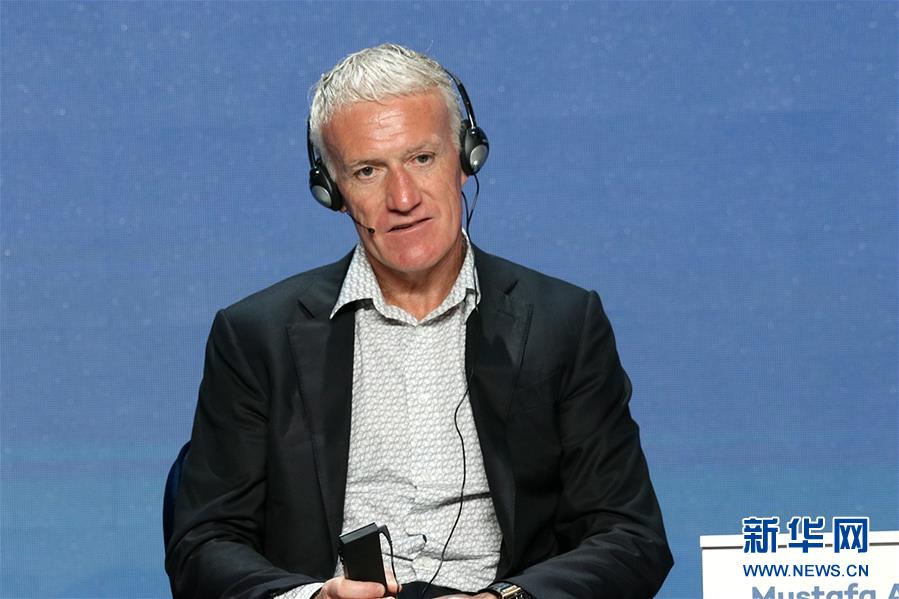 ↑1月2日,法国男足国家队主教练迪迪埃·德尚在会议上。 当日,第13届迪拜国际体育会议在阿联酋迪拜召开,众多国际足球知名人士应邀出席。 新华社发(马哈茂德·哈立德摄)