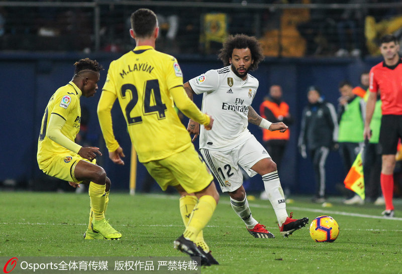 人民网北京1月4日电(管若寒)北京时间1月4日,西甲第17轮的一场补赛进行,卡索拉梅开二度,本泽马和瓦拉内进球。皇马被比利亚雷尔2-2逼平,3连胜被终结,目前已经落后巴萨多达7分,争冠只剩下理论上的可能,比利亚雷尔则暂时逃离降级区。