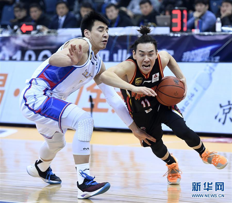 1月3日,南京同曦大圣队球员冯欣(右)在比赛中控球。 当日,在2018-2019赛季中国男子篮球职业联赛(CBA)常规赛第28轮比赛中,天津滨海云商金控队主场以110比102战胜南京同曦大圣队。 新华社记者岳月伟摄