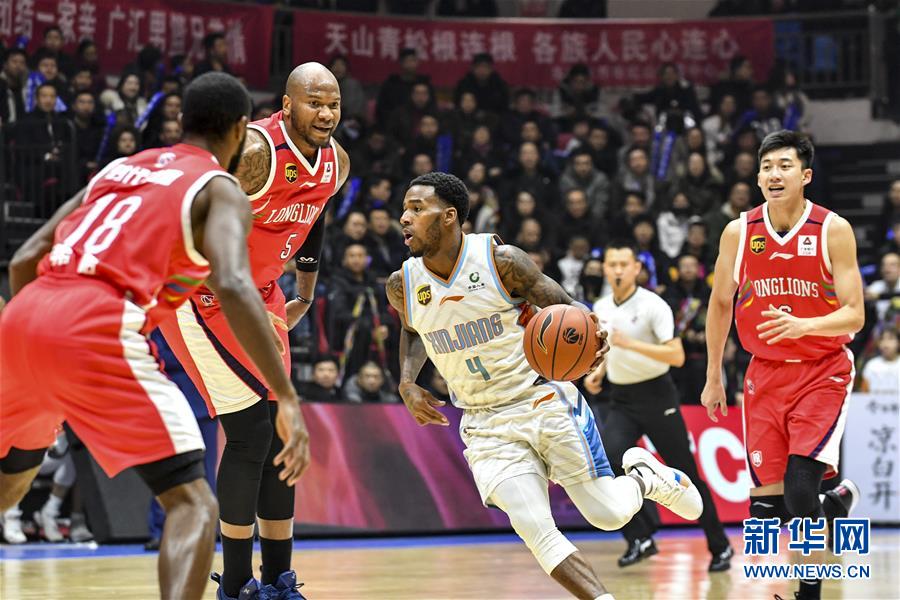 1月3日,新疆广汇汽车队球员亚当斯(左三)在比赛中突破。 新华社记者马锴摄