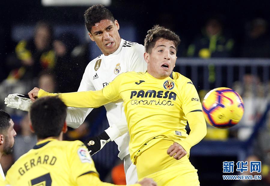 1月3日,皇家马德里队球员瓦拉内(上)头球攻门。 新华社/美联