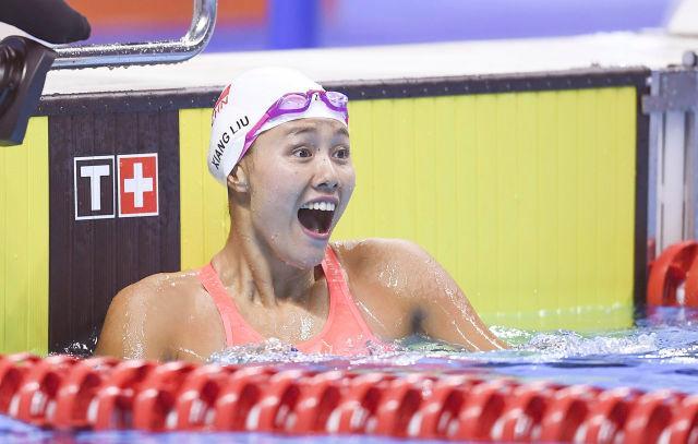 2018年8月21日,中国选手刘湘在第18届亚运会女子50米仰泳决赛后庆祝。她以26秒98的成绩夺冠并打破世界纪录。 新华社记者李响摄 图片来源:新华网