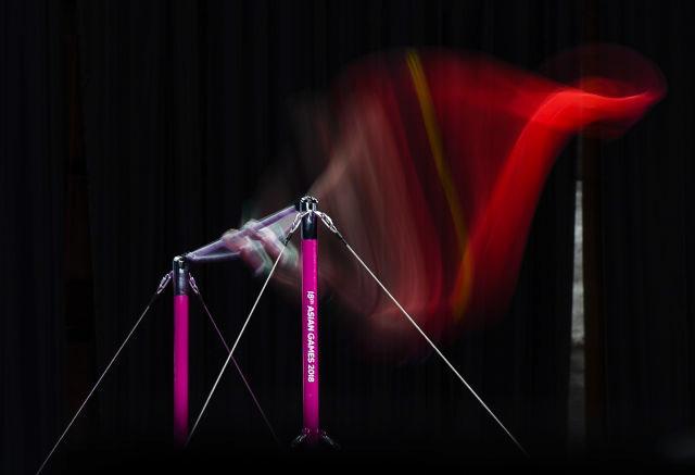 2018年8月24日,运动员在男子体操单杠决赛中。当日,在印度尼西亚雅加达举行的第18届亚运会体操男子单杠决赛中,中国台北选手唐嘉鸿获得冠军。中国选手孙炜和肖若腾分获二三名。 新华社记者李响摄 图片来源:新华网