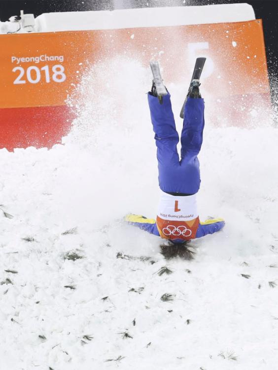 2018年2月16日,徐梦桃在比赛中发生失误。当日,在凤凰雪上公园举行的2018年平昌冬奥会自由式滑雪女子空中技巧决赛中,中国选手徐梦桃以59.25分的成绩排名第九位。 新华社记者李钢摄 图片来源:新华网