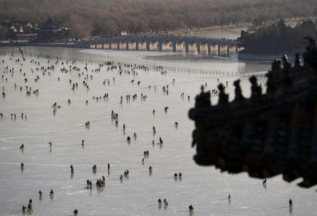 2018年12月30日,游客在颐和园冰场体验各种冰上娱乐项目。当日,北京颐和园昆明湖70万平方米的冰场正式开放,设有冰车、冰上自行车、冰滑梯等10个冰上娱乐项目。 新华社记者陈晔华摄 图片来源:新华网