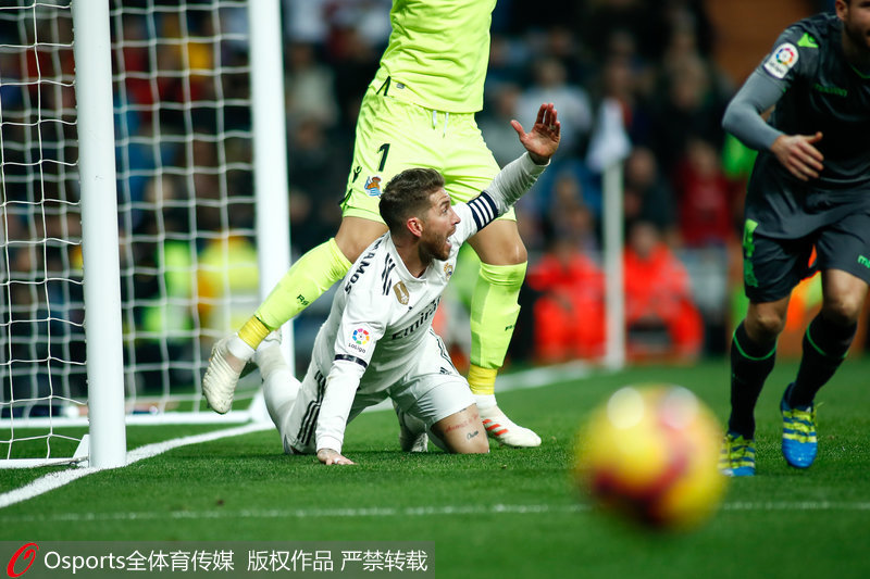 拉莫斯进攻角球时小禁区边缘在伊利亚拉门迪防守下摔倒,裁判未予判罚引来嘘声一片。克罗斯开出角球,卡塞米罗头球攻门稍稍高出。