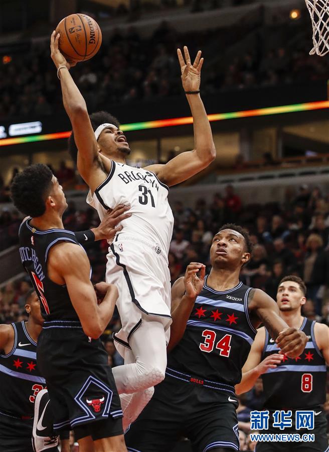 篮网队球员艾伦(上)在比赛中上篮。 新华社发