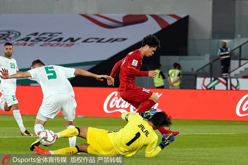 人民网北京1月9日电(欧兴荣)北京时间1月8日21:30,亚洲杯D组首轮进行一场小组赛,由伊拉克对阵越南。上半场阿里-法耶兹打进乌龙球,默罕默德-阿里前场抢断扳平比分,阮公凤门前捅射将比分超出;下半场替补登场的胡马姆门前劲射扳平比分,阿里-阿德南任意球圆月弯刀完成绝杀。最终伊拉克3-2战胜越南!
