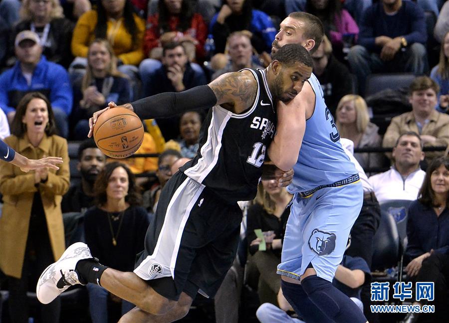 1月9日,灰熊队球员马克·加索尔(右)在比赛中防守马刺队球员阿尔德里奇。 新华社/美联