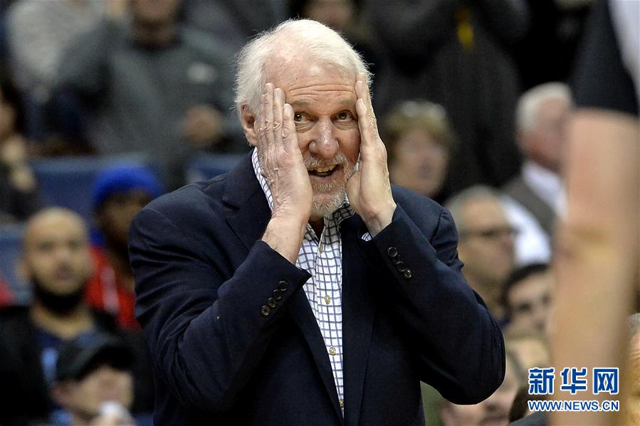 1月9日,马刺队主教练波波维奇在比赛中质疑裁判判罚。 新华社/美联