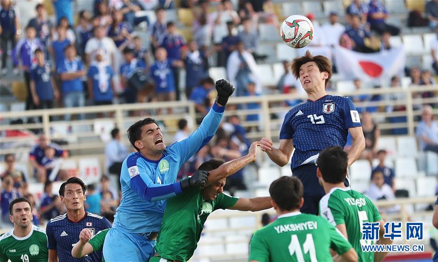 1月9日,日本队球员大迫勇也(上右)在比赛中头球攻门。 新华社记者曹灿摄
