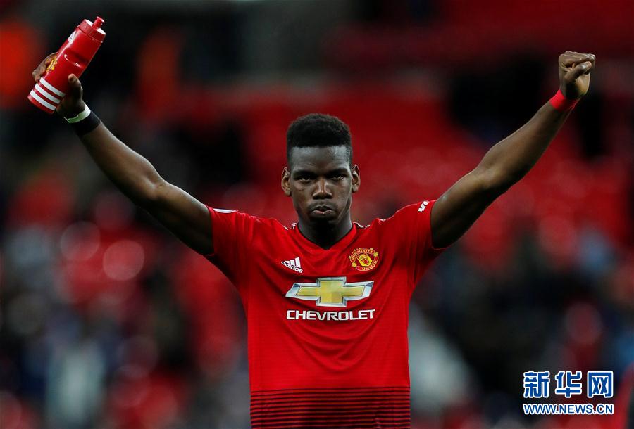 1月13日,曼联队球员博格巴获胜后庆祝。 当日,在2018-2019赛季英超联赛第22轮比赛中,曼联队客场以1比0战胜热刺队。 新华社/路透