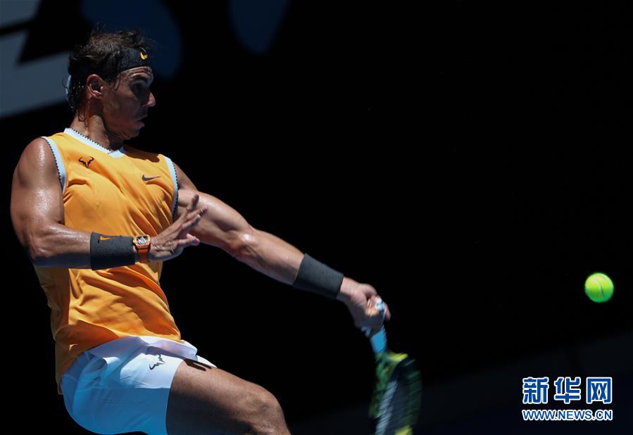 西班牙选手纳达尔在比赛中回球。 新华社记者白雪飞摄
