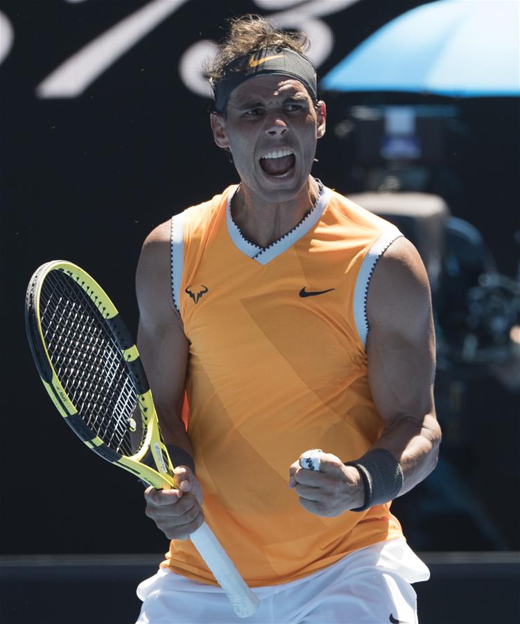 西班牙选手纳达尔庆祝晋级。新华社记者吕小炜摄