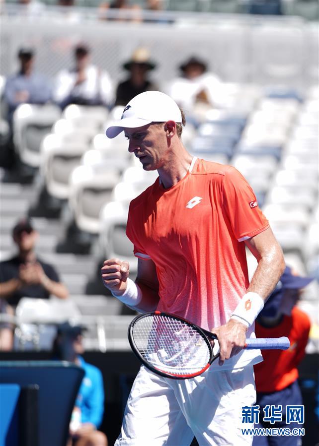 1月14日,南非选手凯文·安德森在比赛中。 当日,在2019澳大利亚网球公开赛男单首轮比赛中,南非选手凯文·安德森以3比1战胜法国选手阿德里安·曼纳里诺,晋级下一轮。 新华社记者白雪飞摄