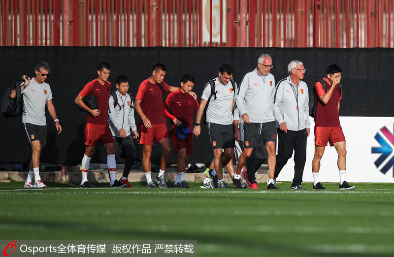 人民网北京1月15日电(马翼)北京时间1月14日,中国男足国家队继续在阿布扎比训练备战亚洲杯小组赛的最后一个对手韩国队。尽管国足已提前一轮小组出线,主教练里皮仍然不敢怠慢,本场训练中国男足全员悉数到齐。整场训练中,队内气氛还是显得较为轻松,有伤在身的武磊、韦世豪也到场进行了恢复训练。