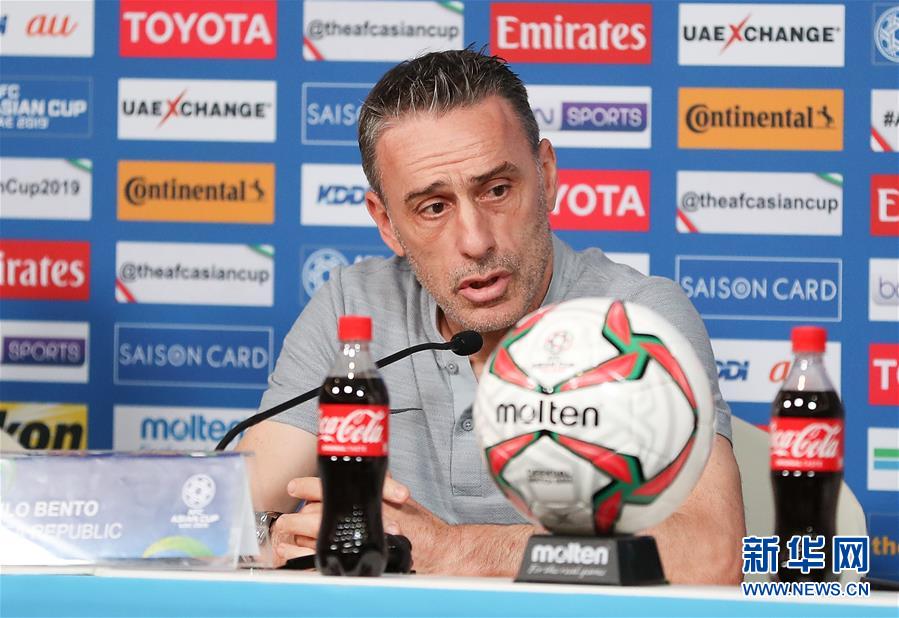 ↑1月15日,韩国队主教练本托在发布会上介绍球队情况。 当日,韩国队在阿联酋阿布扎比纳扬体育场举行赛前新闻发布会和适应场地训练。 新华社记者曹灿摄