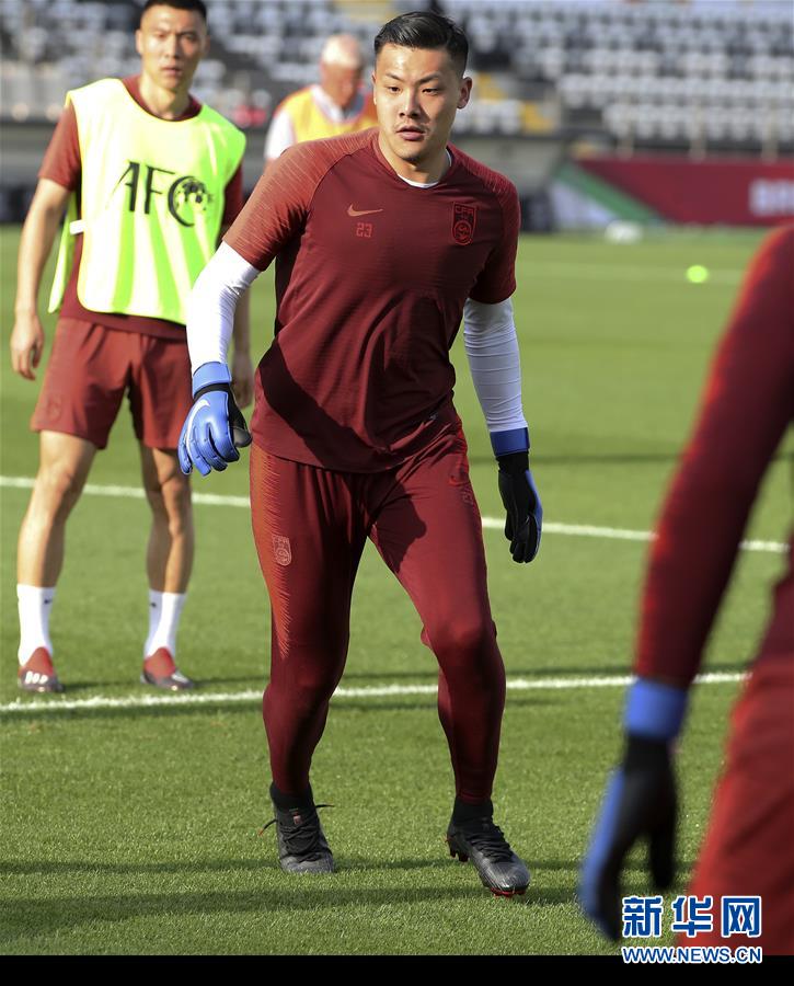 ↑1月15日,中国队守门员王大雷在训练中。 当日,中国国家男子足球队在阿联酋阿布扎比进行场地适应训练,备战16日与韩国队进行的2019年亚洲杯足球赛C组比赛。 新华社记者李钢摄