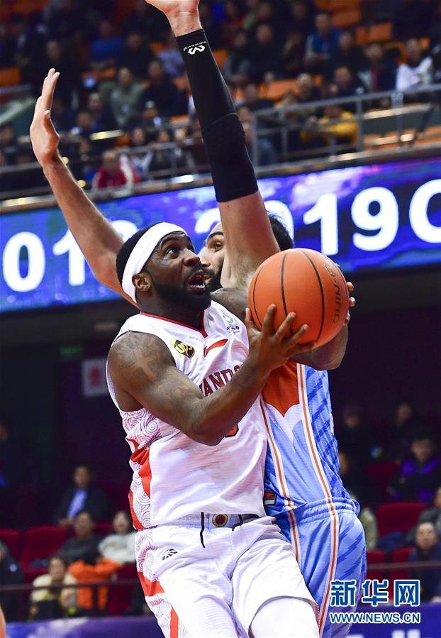 山东西王队球员劳森(前)在比赛中上篮。 新华社记者朱峥摄