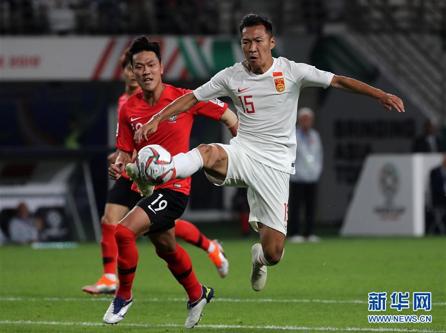 1月16日,中国队球员吴曦(右)在比赛中控球。 当日,在阿联酋阿布扎比举行的2019亚洲杯足球赛C组比赛中,中国队以0比2不敌韩国队。 新华社记者李钢摄