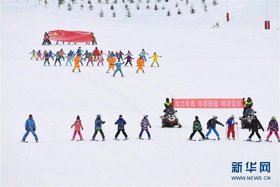 人们在阿勒泰市将军滑雪场参加庆祝活动。 新华社记者沙达提摄