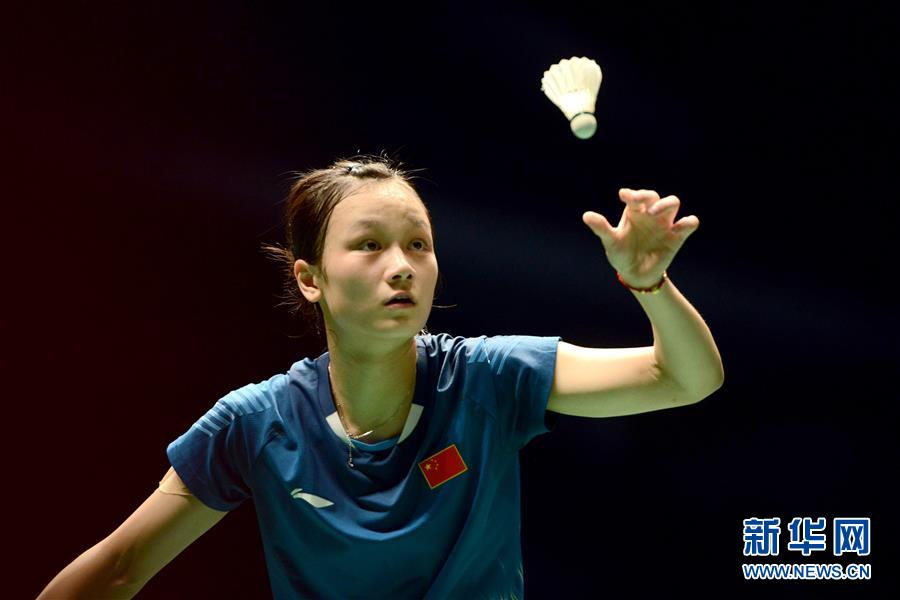 张艺曼在比赛中发球。 新华社发(张纹综摄)